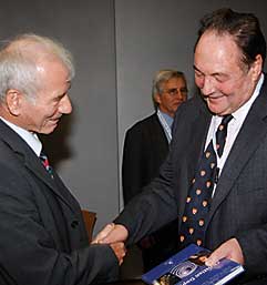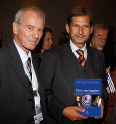 26. September 2007: Übergabe der obigen Neuerscheinung an Dr. Johann Hahn, Bundesminister für Wissenschaft, und an Dr. Peter Schuster, Präsident der Österreichischen Akademie der Wissenschaften in Wien, anlässlich der 57. Jahrestagung der Österreichischen Physikalischen Gesellschaft in Krems vom 24. -28. September 2007 (Foto: Wilfried Blaschnek) |